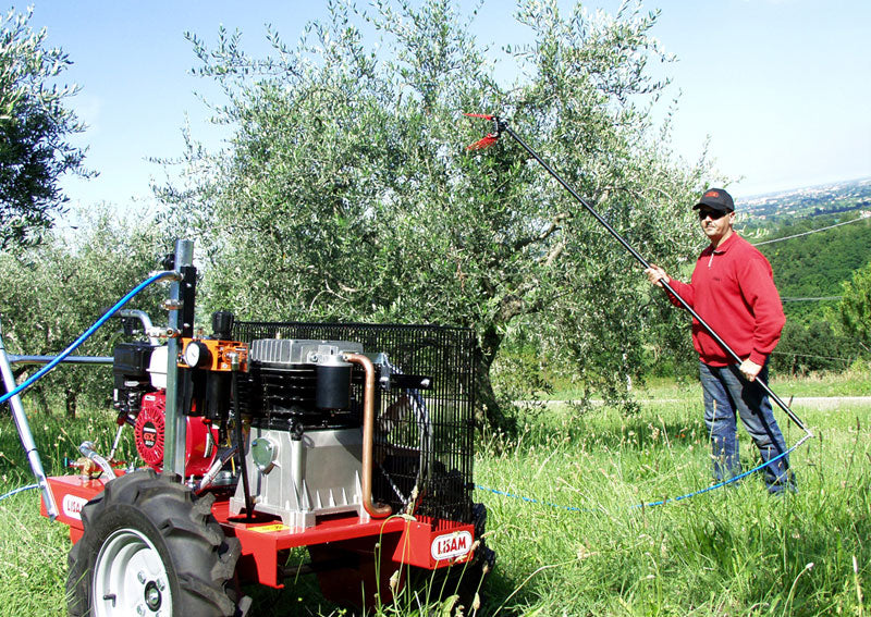 Der pneumatische Abbacchiatore Lisam V8 Titanium ist ein hochmodernes Gerät, das entwickelt wurde, um die Olivenernte zu optimieren. Mit beeindruckenden 2.000 Schlägen pro Minute und einem unglaublich geringen Gewicht von nur 720 Gramm gewährleistet dieses Werkzeug hohe Effizienz und Benutzerfreundlichkeit. Hergestellt aus Titan und Magnesium, bietet es eine leichte, aber robuste Struktur, ideal für präzise Manöver und längeren Gebrauch. Das innovative Design der fächerförmigen Rechen ermöglicht es, auch die kleinsten Oliven zu ernten, indem es sich geschickt zwischen den Zweigen bewegt, ohne die Pflanze zu beschädigen.
